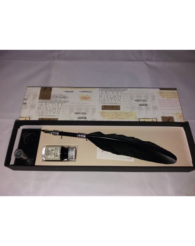 PENNINO CON PIUMA NERO E ARGENTO CONF : 30 X 8 CM